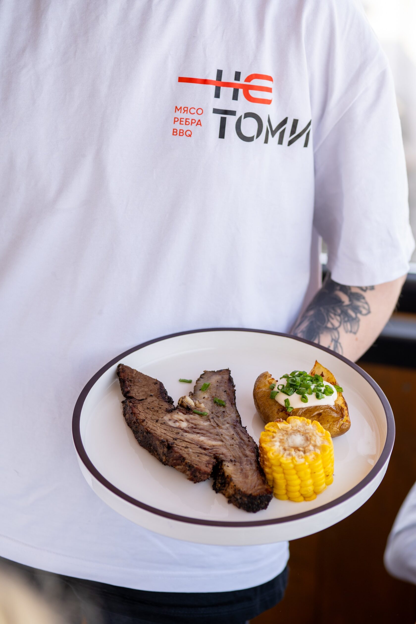 МЯСО КАК ОСНОВА ВСЕГО Брискет — говяжья грудинка, которая благодаря томлению становится главной звездой нашего меню. Свиные ребра превращаются в сочное мясо, отваливающееся от кости. Рваное мясо получает дымный аромат и идеальную текстуру для бургеров.